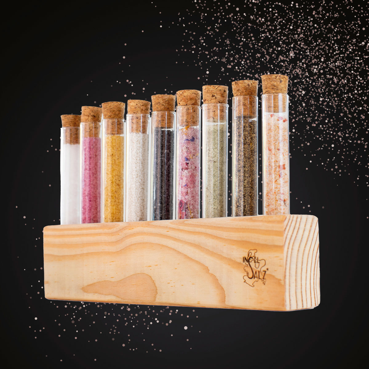 Ob goldgelb, reinweiß oder rustikal-anthrazit – in verschiedenen, interessanten Farbkombinationen stellt sich unser Insel-Salz selbstbewusst in das Rampenlicht und wird so zum Star auf deinem Teller.